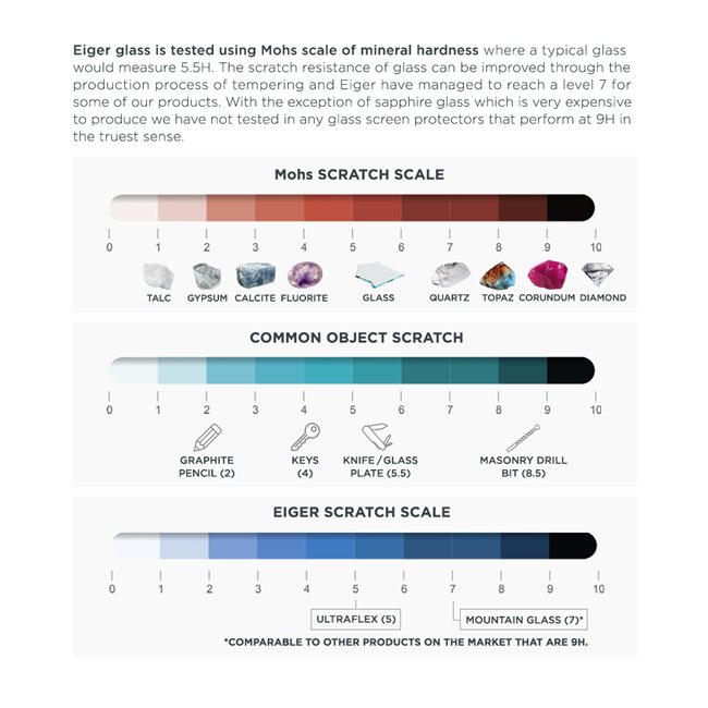 9H HärteDie EIGER 3D Glas Displayschutzgläser sind 9-mal härter als ein Standardglas und verfügen über ein 0,33 mm ultradünnes, kratzfestes Design mit abgerundeten Kanten und einer hochauflösenden Klarheit.